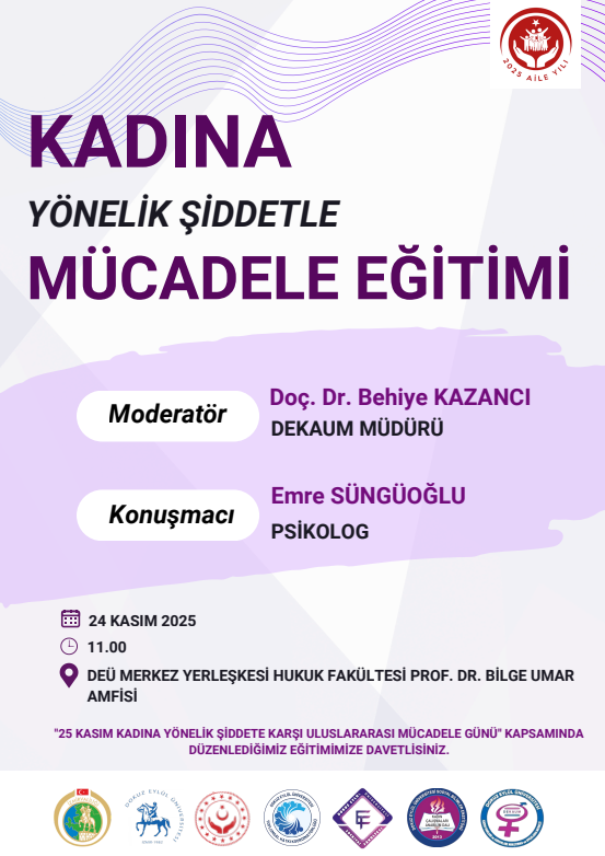 24 Kasım 2025 Tarihli DEKAUM Merkez Müdürümüz Doç. Dr. Behiye KAZANCI Tarafından ”25 Kasım Kadına Yönelik Şiddete Karşı Uluslararası Mücadele Günü ” Kapsamında Eğitim Verilmiştir. Yayınlanma Tarihi: 24-11-2025